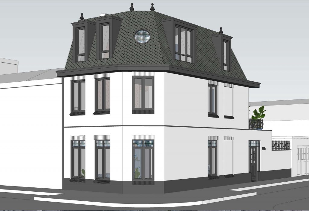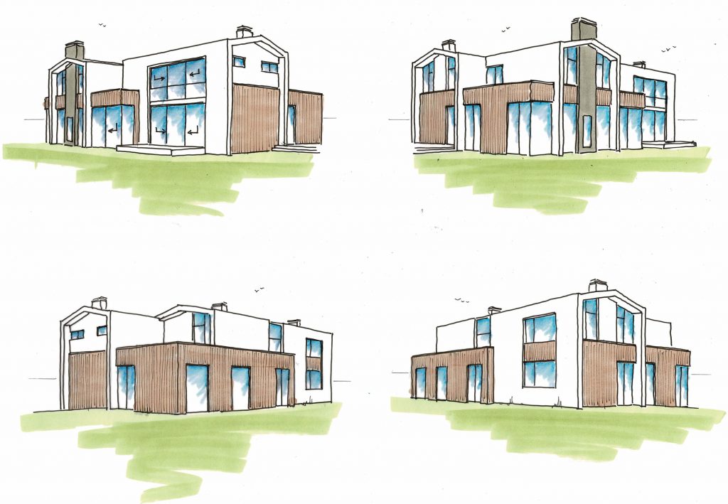 Ontwerpschetsen voor de transformatie van een typische jaren vijftig villa