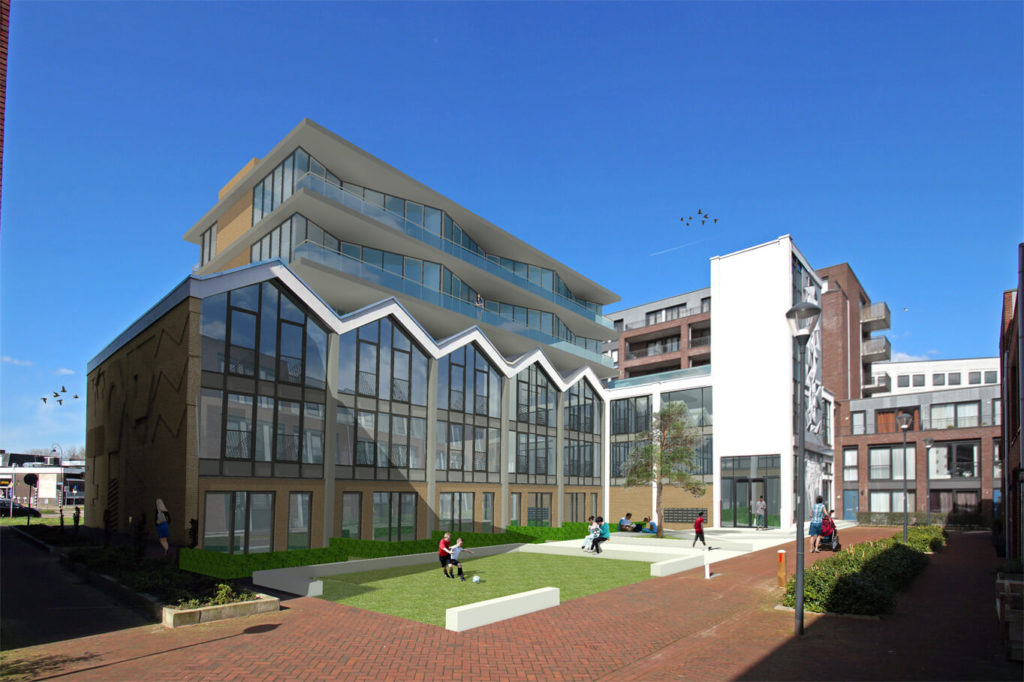 Het ontwerp voor het zwevende volume bovenop de Aula van de Haarlemse school wordt gepresenteerd aan de Adviescommissie Ruimtelijke Kwaliteit. In het volume worden 12 loftappartementen gerealiseerd. De constructie ten behoeve van dit volume gaat dwars door de bestaande aula heen.