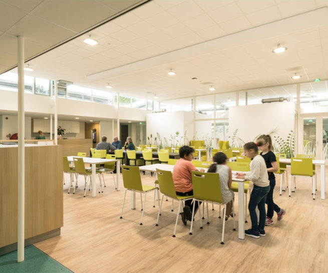 In het gebouw van het Kennemer Theater in Beverwijk heeft een grote verbouwing plaats gevonden om het Centrum voor Jeugd en Gezin CJG en de jeugdgezondheidszorg JGZ Kennemerland te verwelkomen. Ze gaan hier samen werken met Socius. Ook de Ouderen van Beverwijk hebben een nieuwe biljartzaal in gebruik genomen. Veel daglicht is er gerealiseerd tot in alle hoeken van het gebouw en door de toepassing van lichte en warme kleuren in combinatie met het duurzame bamboe is een prettige sfeer ontstaan. In de gezamenlijke lunchruimte ontmoeten de verschillende gebruikers elkaar.